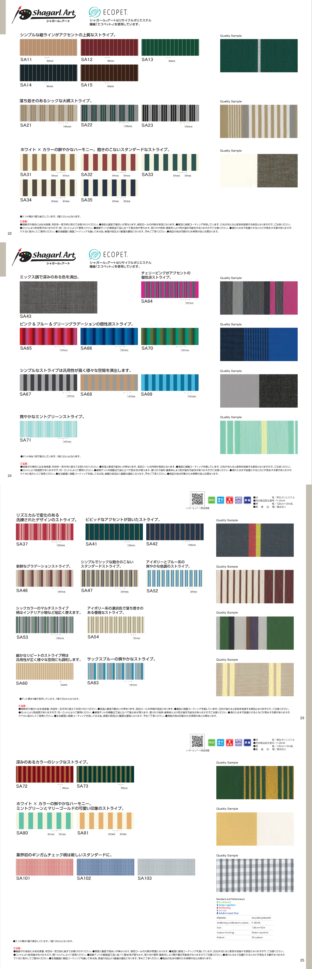 シャガールアートは、全38柄のデザインがあり、特にストライプ柄が豊富で、店舗や住宅の装飾に適しています。